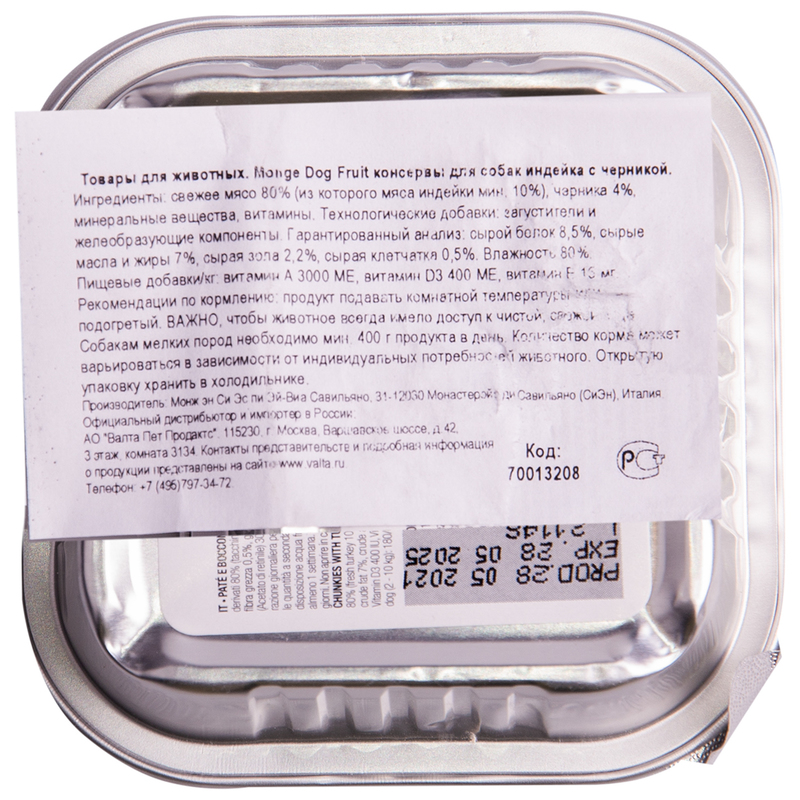 Monge Dog Fruit консервы для собак индейка с черникой 100 г